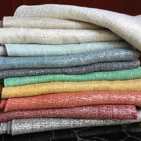 Colored and metallic linen weave available in 11 colors. This semi-transparent weave, once made into blinds or curtains, lets in a beautiful warm subdued light.