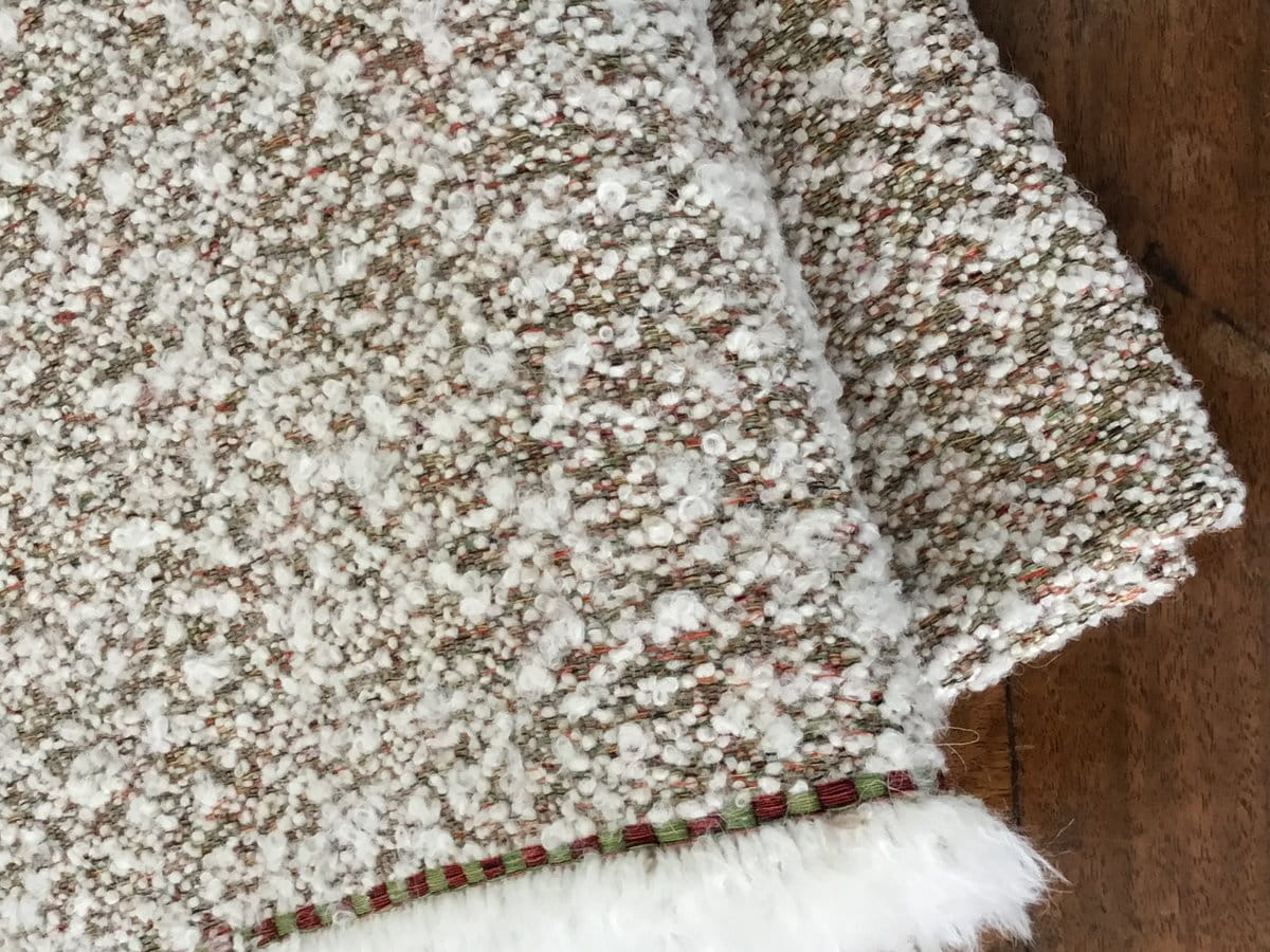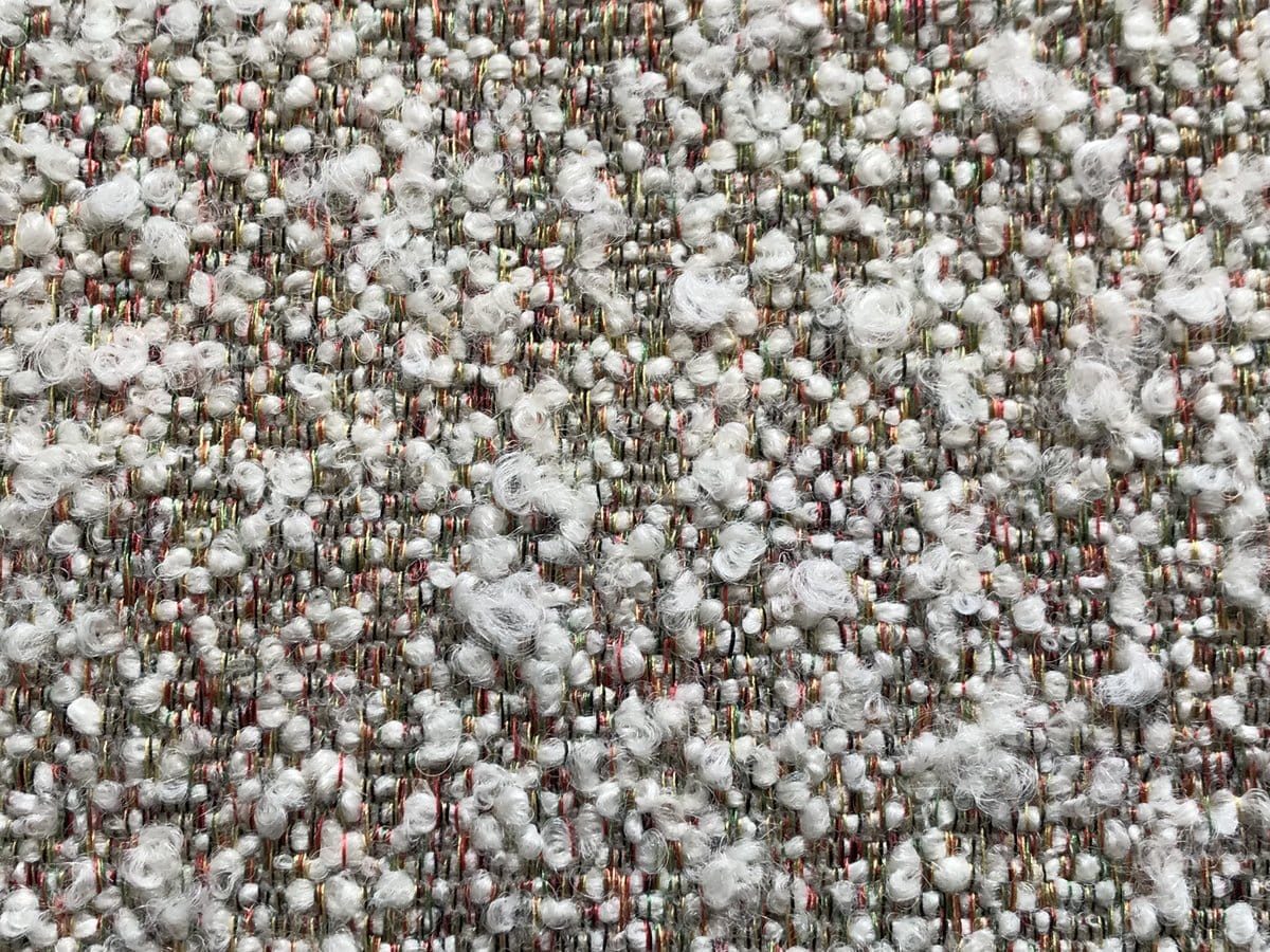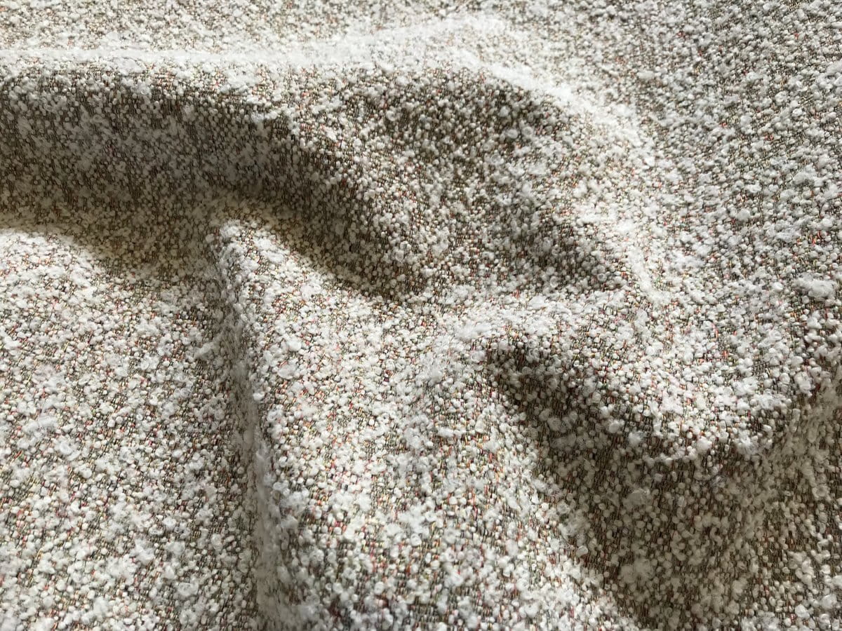 Large ivory ringlet with a supple and comfortable woolly appearance on a background of multicolored yarns. This fabric will be primarily intended for making cushions, seats and sofas. 1 colorway.