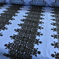 Frida is an embroidery of Hispanic inspiration treated with a black thread that gives it all its relief and intensity. The design refers to Frida Kahlo's braids in the movie which carries its name.