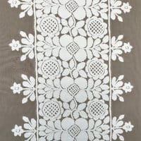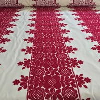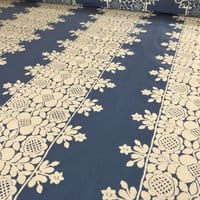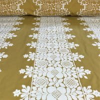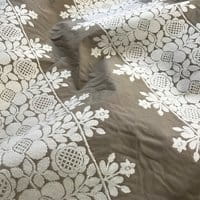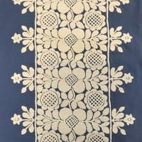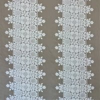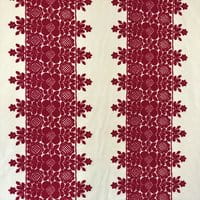 Frida is presented in eight colors, the design is composed of three bands of embroidery and a half-band at the raccord at each edge of the width. The plain backgrounds of the Frida and Colette drawings are available under the reference "Voile de Felouque" to allow beautiful combinations of embroidery and plain backgrounds.