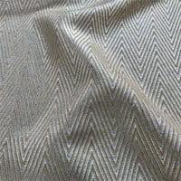 Poisson d'Argent is weaved with a viscose raffia thread of silvery aspect, mixed with a Linen coloured thread . The combination of these two materials gives to this fabric a fantastic silvery final aspect which evokes the fishs shoals dancing in the ocean.