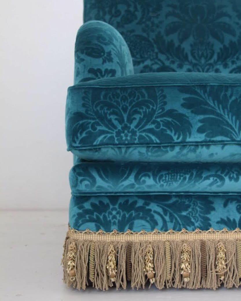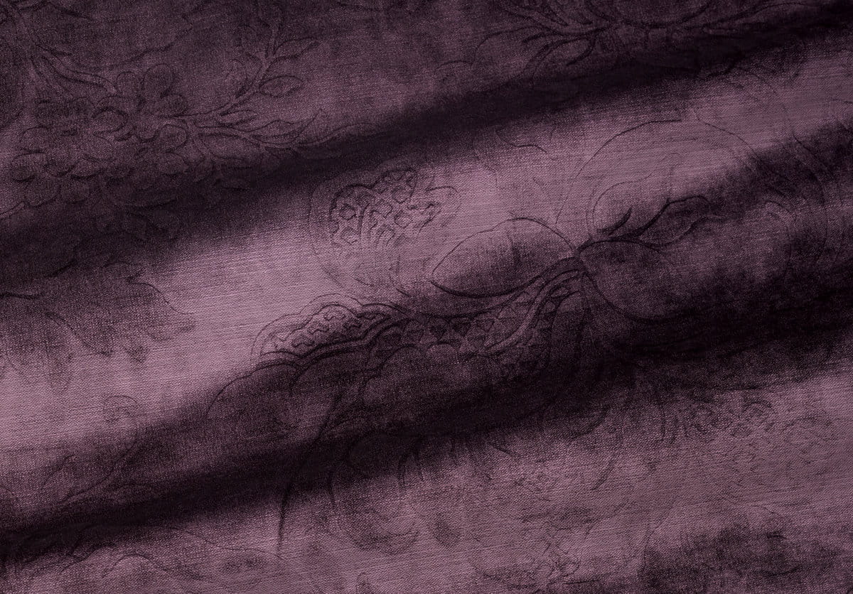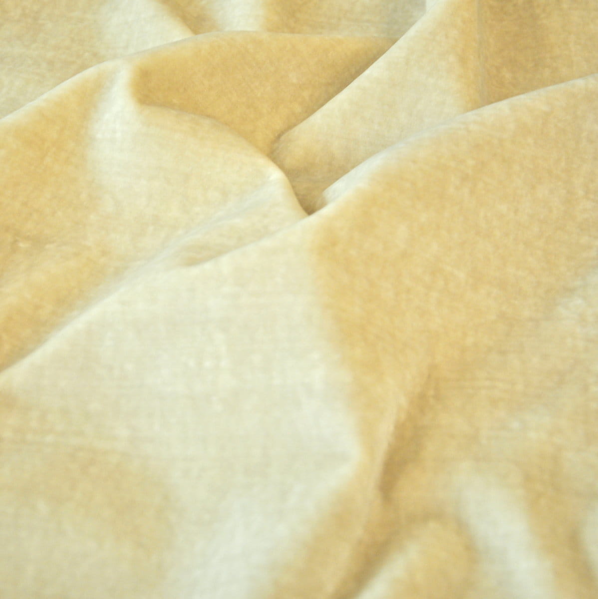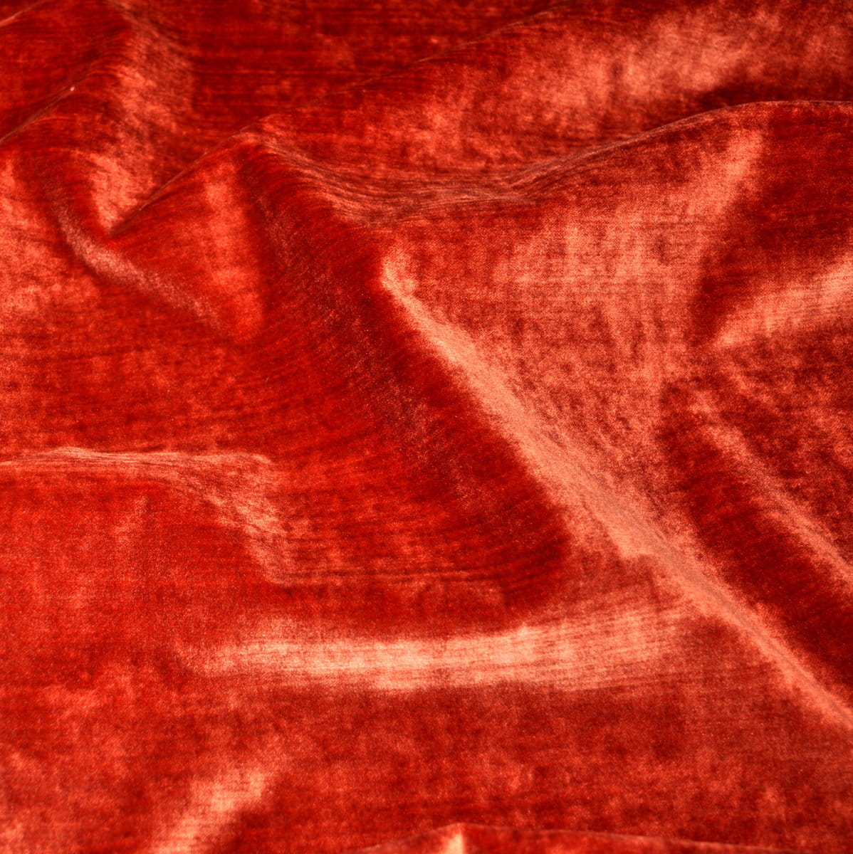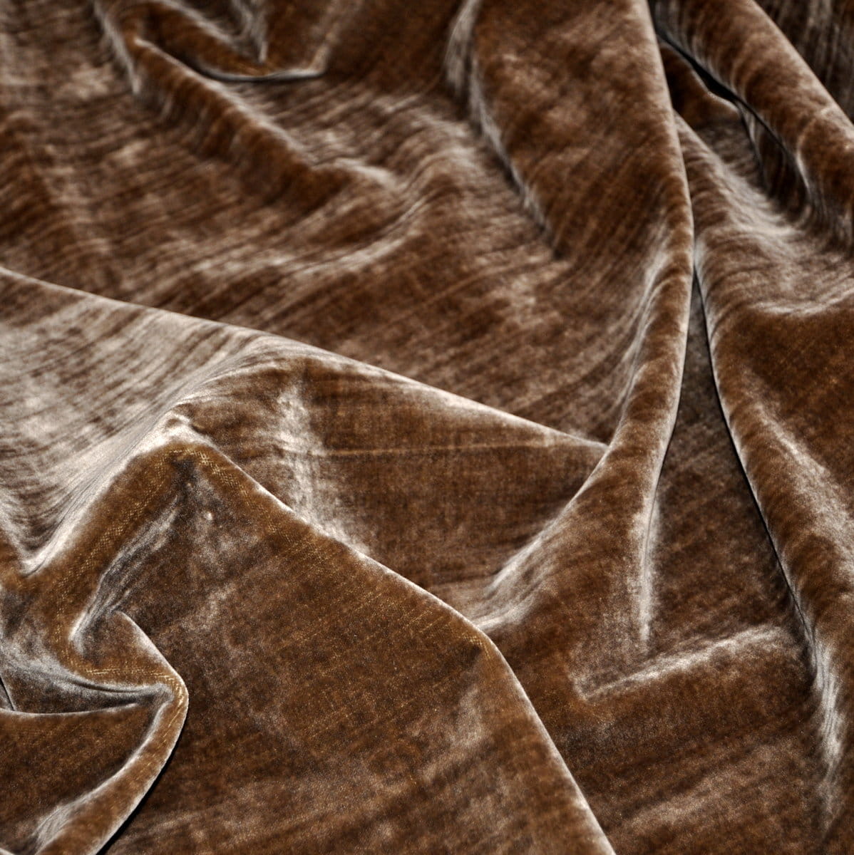 Velours de Fiacre reminds us by its touch and its aspect, the spirit of the traditional silk velvets. As any high quality and soft velvet, this fabric can show some marks and shadows. This will be inherent from the fabric and must be understood as an element of this velvet. It will give it with the time, its charming aspect and character. Its 100% viscose pile is fixed on a coton, viscose, and polyester back which brings it a high resistance and stability. It can be used both for upholstering and decoration; makes wonderful curtains.