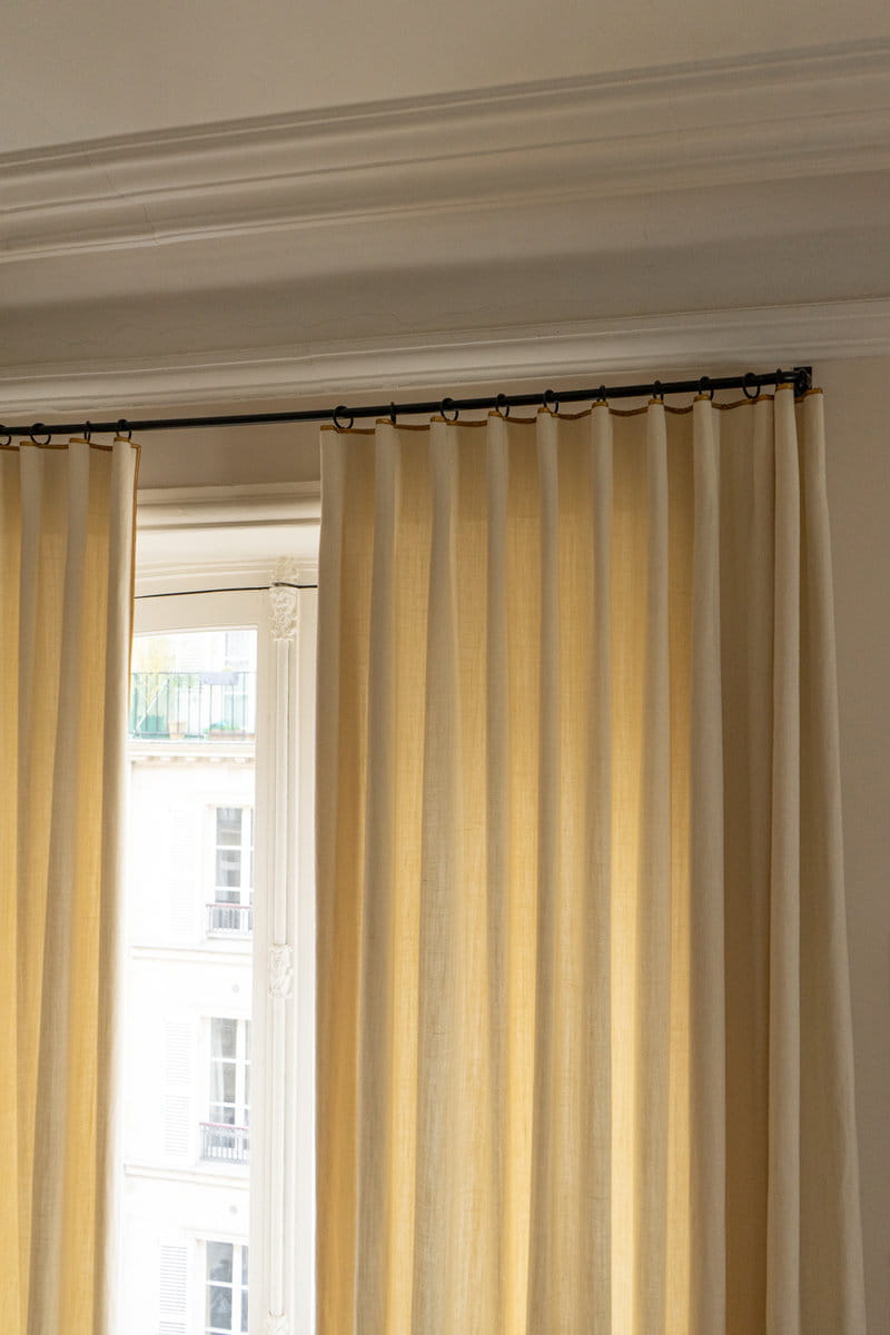Gros lin de haute densité, d'esprit médiéval. Ce tissu présentera un tombé en rideaux ou en stores exceptionnel. Ce type de lin se gorge de l'hygrométrie ambiante ce qui lui confère une tenue toujours irréprochable.