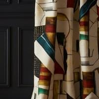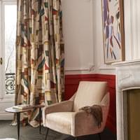 Kasimir est un dessin cubiste dans l'esprit Malévitch. Le mariage réussi de formes géométiques simples et de couleurs fortement pigmentées. Il est imprimé sur un très beau lin délavé qui donne de la profondeur au dessin et assure un beau tombé en rideau et une belle tenue en siéges.