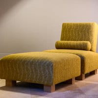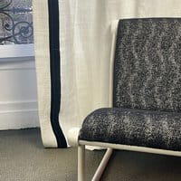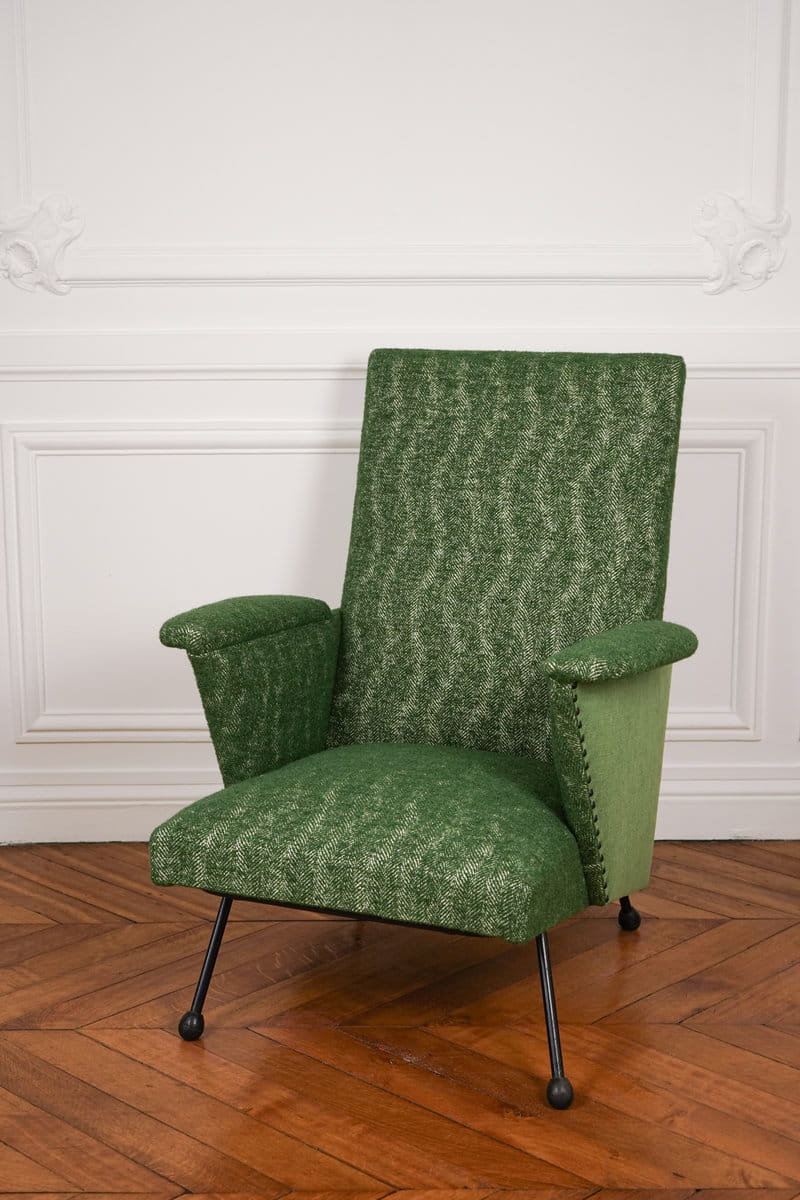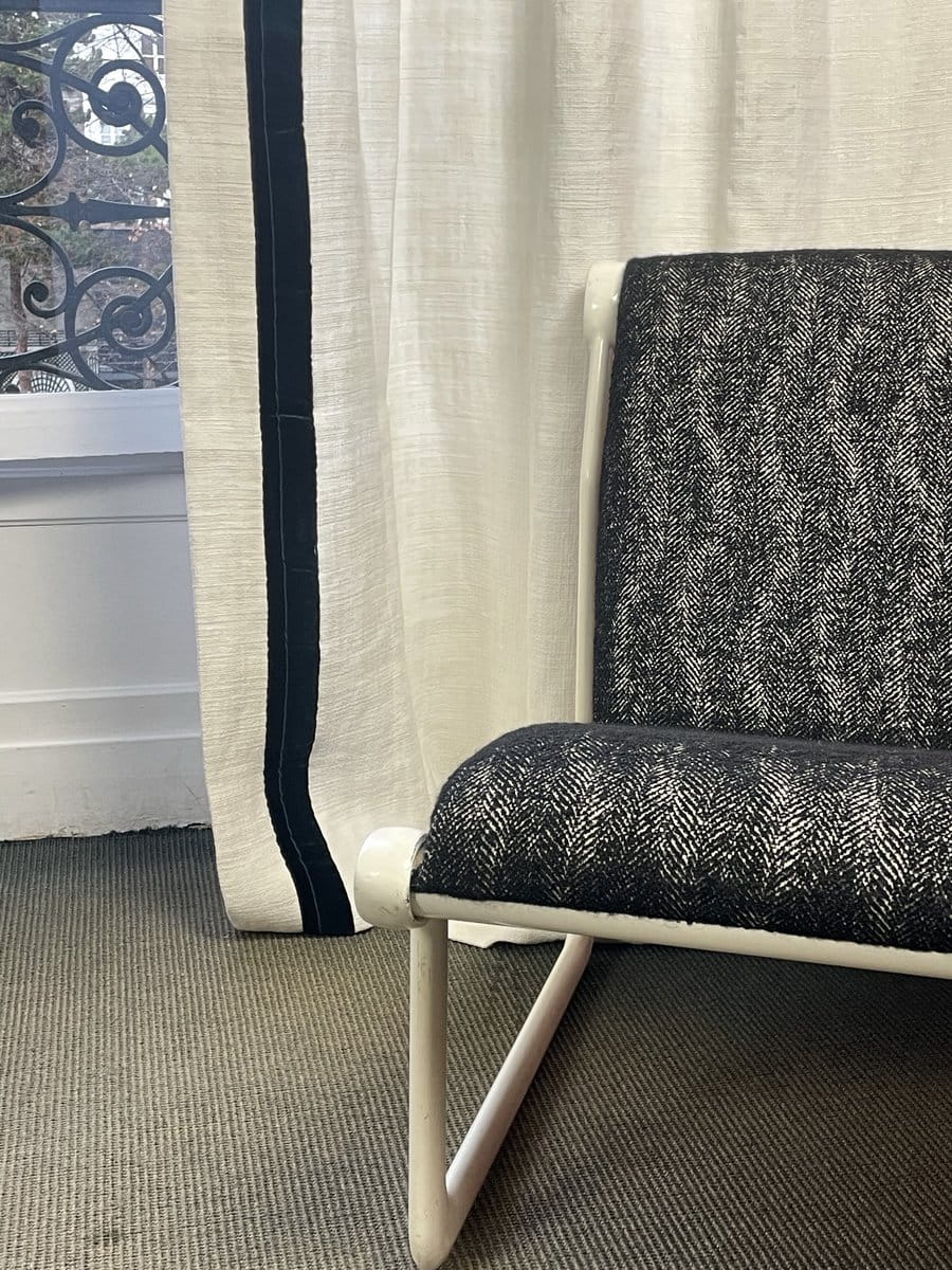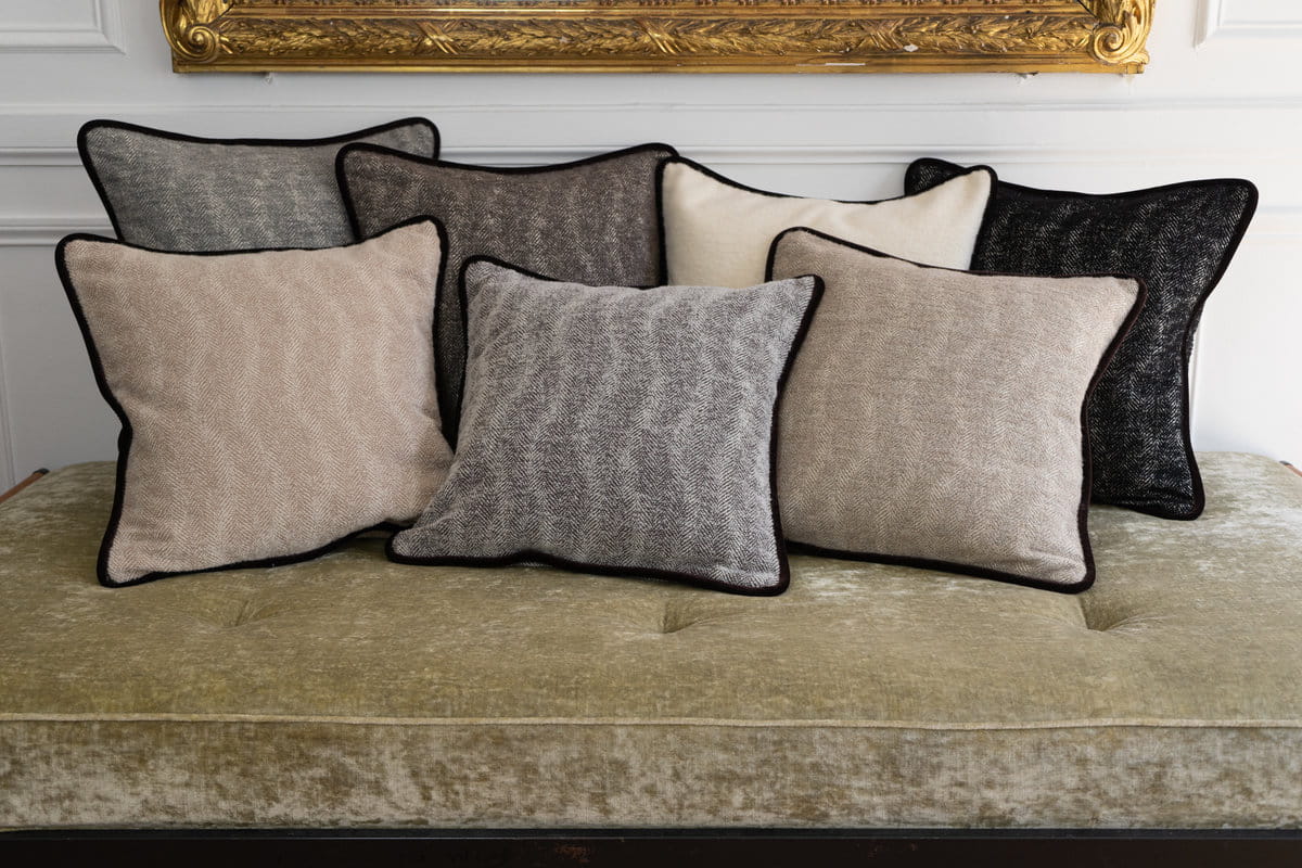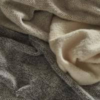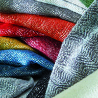 Tissu laineux d'aspect duveteux tissé avec un dessin de chevrons. Ce tissage tres résisant mais très souple peut-être destiné à la couverture de sièges, canapés ou coussins. Il a aussi un tombé magnifique en rideaux ou jetés de lits.