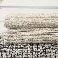 Large black and ivory jacquard weave, woven like a map of New York seen from an airplane. The ecru loops of this jacquard give it a wooly appearance, relief and comfort which make it a marvelous weave for cushions, seats and sofas. 1 colorway only.