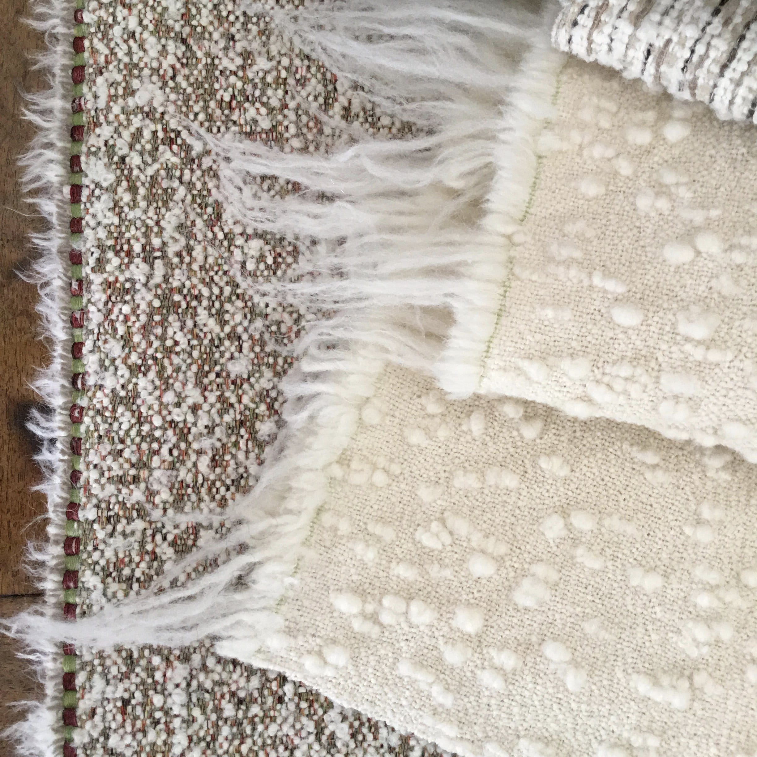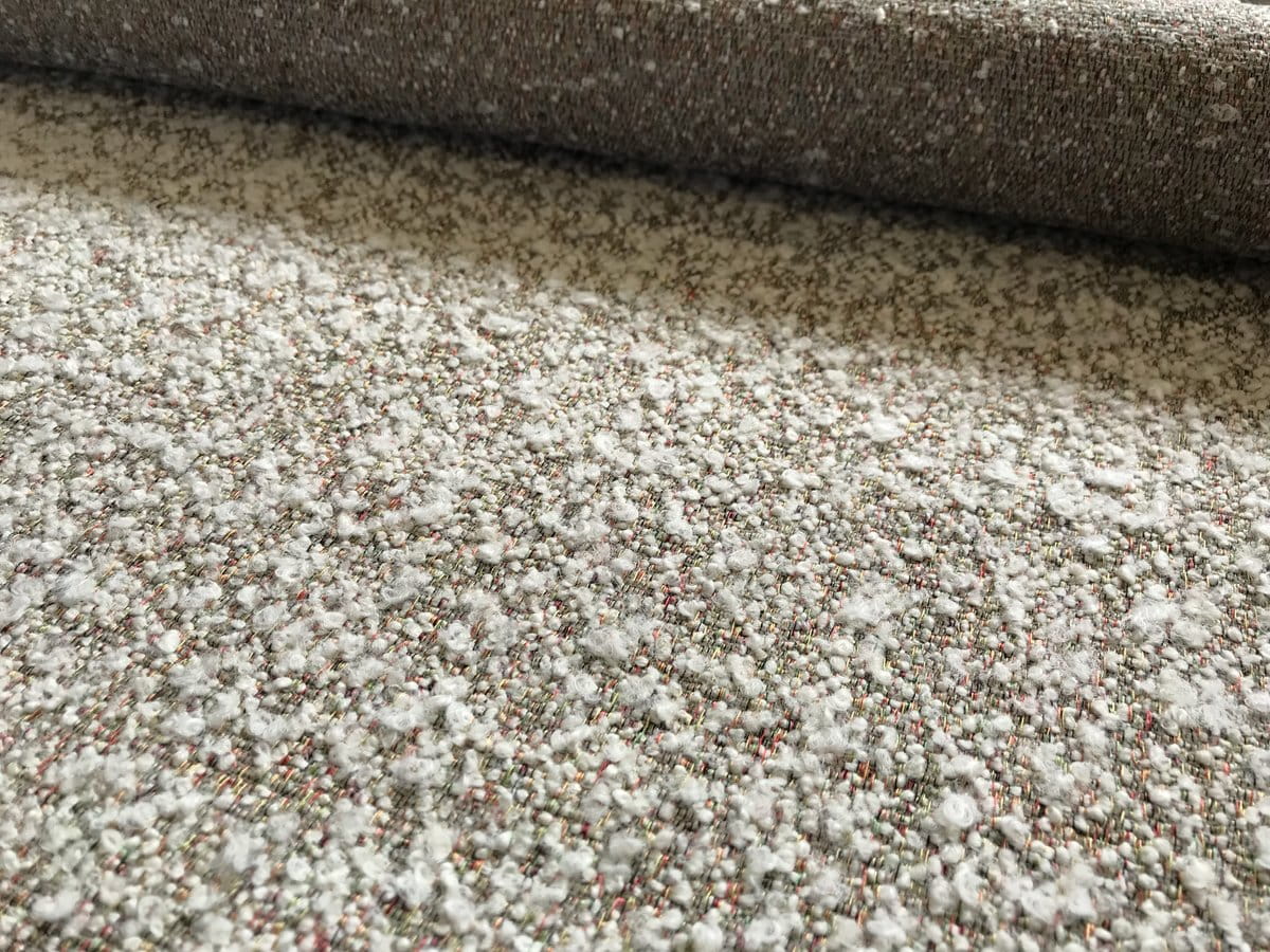 Large ivory ringlet with a supple and comfortable woolly appearance on a background of multicolored yarns. This fabric will be primarily intended for making cushions, seats and sofas. 1 colorway.