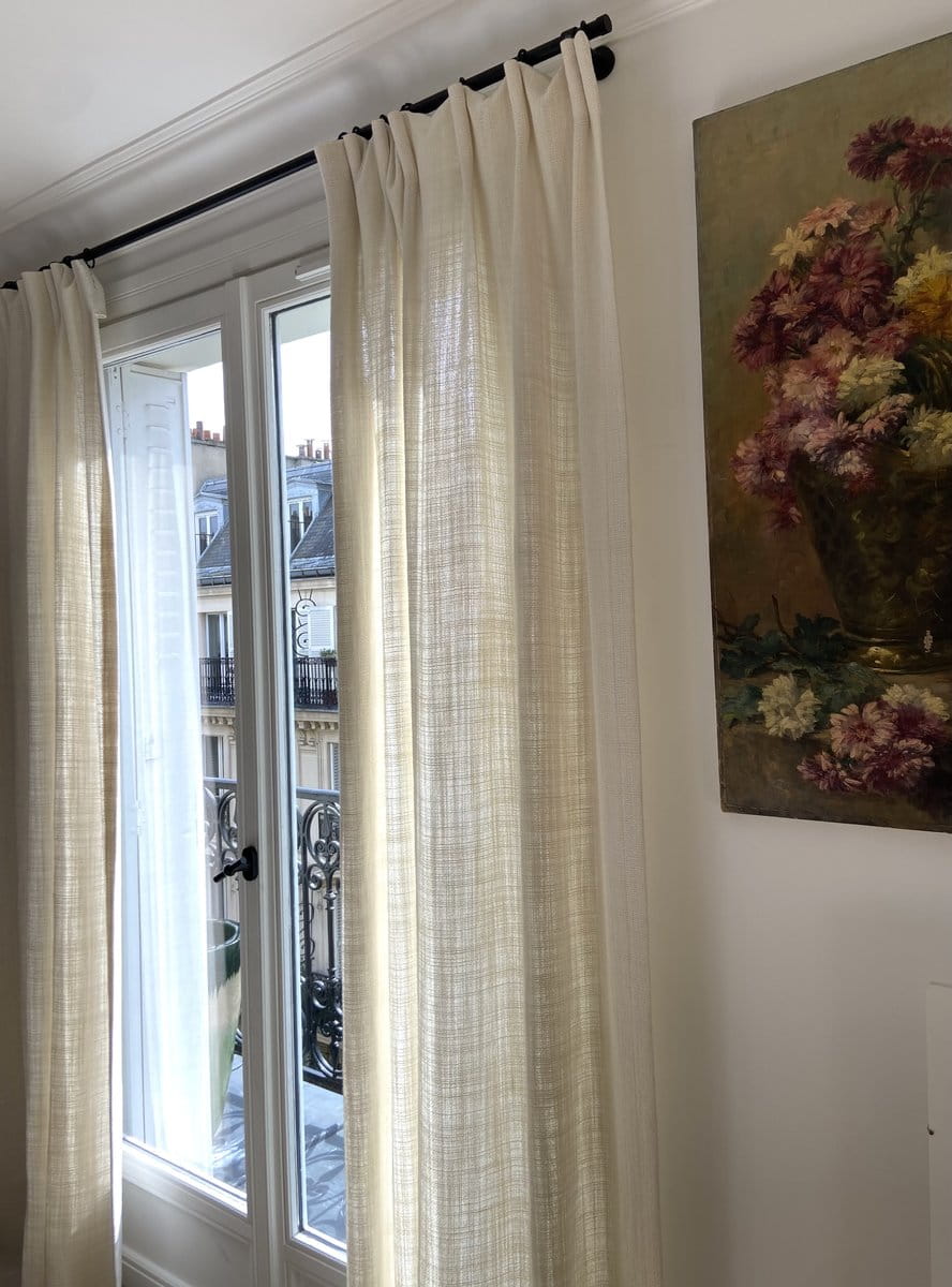 Heavy, fluid, supple and very airy raw linen weave. Only one ivory color for this fabric. This semi-transparent weave, once made into blinds or curtains, will bring a beautiful warm light.