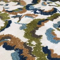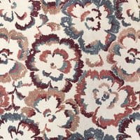 A contemporary interpretation of pansy flowers embroidered in colourful stitches on a textured cotton, linen and polyester ground. Ideal for drapery and soft furnishings.