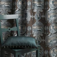 The Les Vues de Paris design is available as a luxury furnishing fabric or as a wallcovering, offering elegant continuity in interior decoration. Inspired by an 1818 drawing by Hippolyte Le Bas, it unfolds as a refined toile in the spirit of Toile de Jouy, where detailed vignettes of Parisian landmarks intertwine. This narrative pattern, both decorative and heritage-inspired, dresses curtains, upholstery, or wall panels with timeless sophistication.
