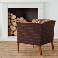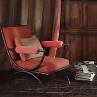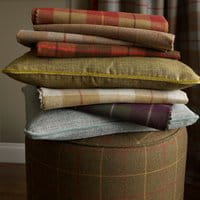 Hawke by Marvic showcases a large regular check, known as a windowpane or overcheck, with fine red/ochre lines on plush, subtly blended wool with a cashmere-like patina. A British tweed accent, country-chic. Curtains with impeccable drape, hard-wearing seating, elegant panels: an interior fabric designed to last, born of meticulous craftsmanship, available in 9 colorways.