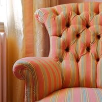 With Misa Moiré Stripe, Marvic reinvents the Regency stripe: understated lines brought to life by a delicate moiré, like a ripple of light across linen. Its absolutely sublime quality and uniquely linen touch make it a rare choice. Available in 9 colors, as furnishing fabric or wallcovering, it dresses flowing curtains, elegant walls, and decorative seating with refined distinction.