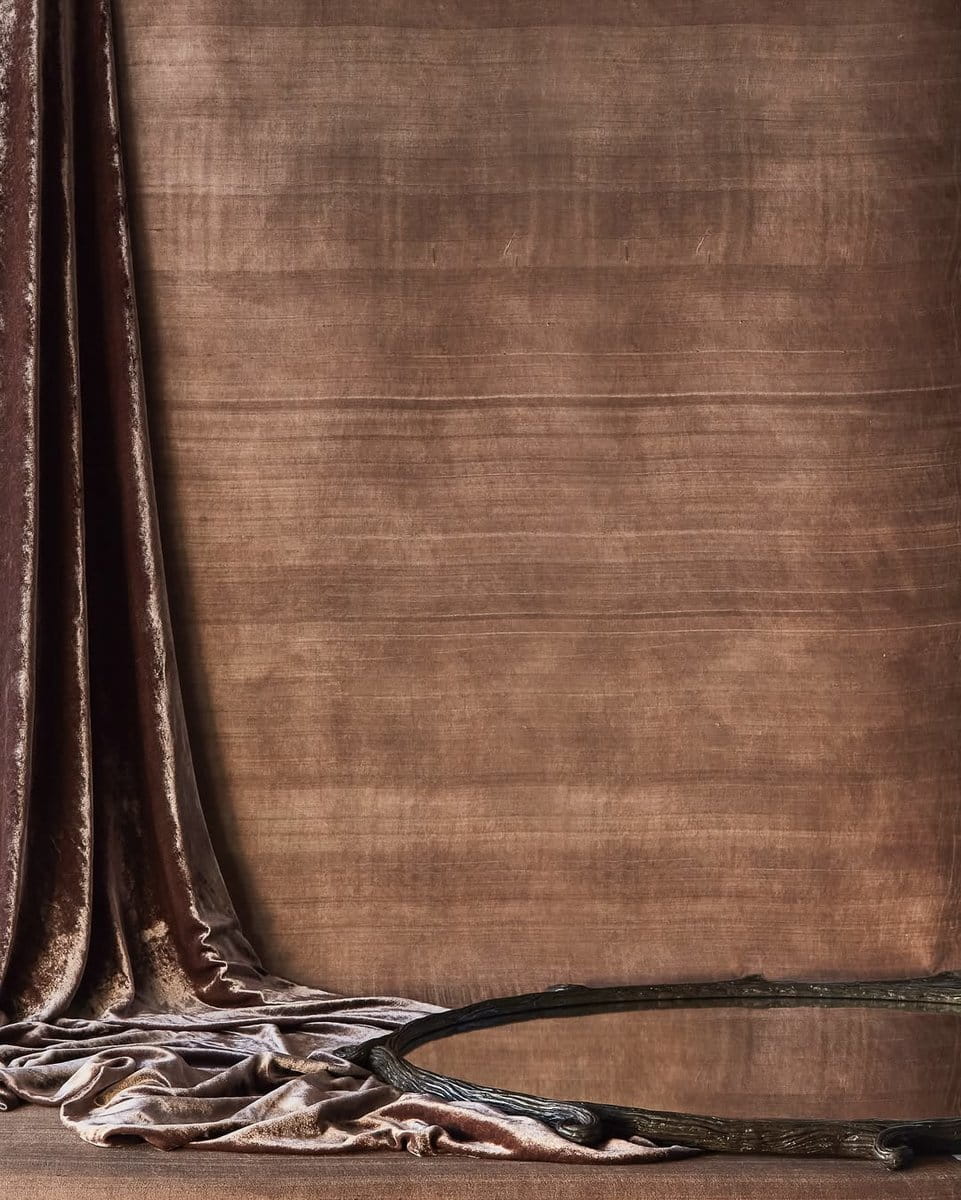Crafted from 100% organic Peace Silk with a smooth, lustrous finish, it is hand-woven and naturally hand-dyed using pigments derived from recycled food waste, ensuring an eco-responsible and refined look. The collection features three subtle shades: Chlorophyll, a light green that evokes fullness and freshness; Avocado, a blush pink with golden highlights that brings calm and elegance; and Walnut, a soft taupe with understated sophistication. Each panel is unique, durable, and custom-made, perfect for accent walls or full-surface applications in residential interiors, contemporary restaurants, boutiques, showrooms, and high-end hotels.