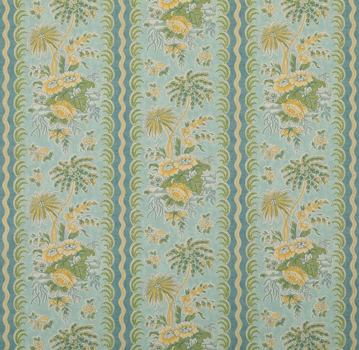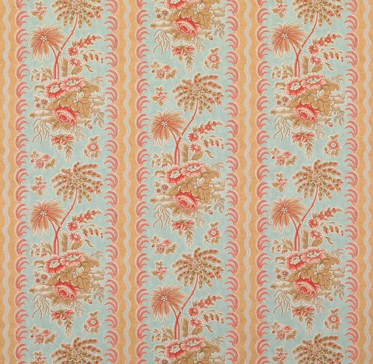 High-end furnishing fabric, Coromandel by Marvic captivates with its floral stripe design inspired by French archives from 1820. Date palms and garlands of roses unfold within, echoing the spirit of 18th-century Indian chintz. Made from lightly satin-finished cotton and offered in 4 colourways, it combines heritage elegance with durability. Perfect for curtains, seating, or panels, it reflects the refined craftsmanship of Marvic Textiles.