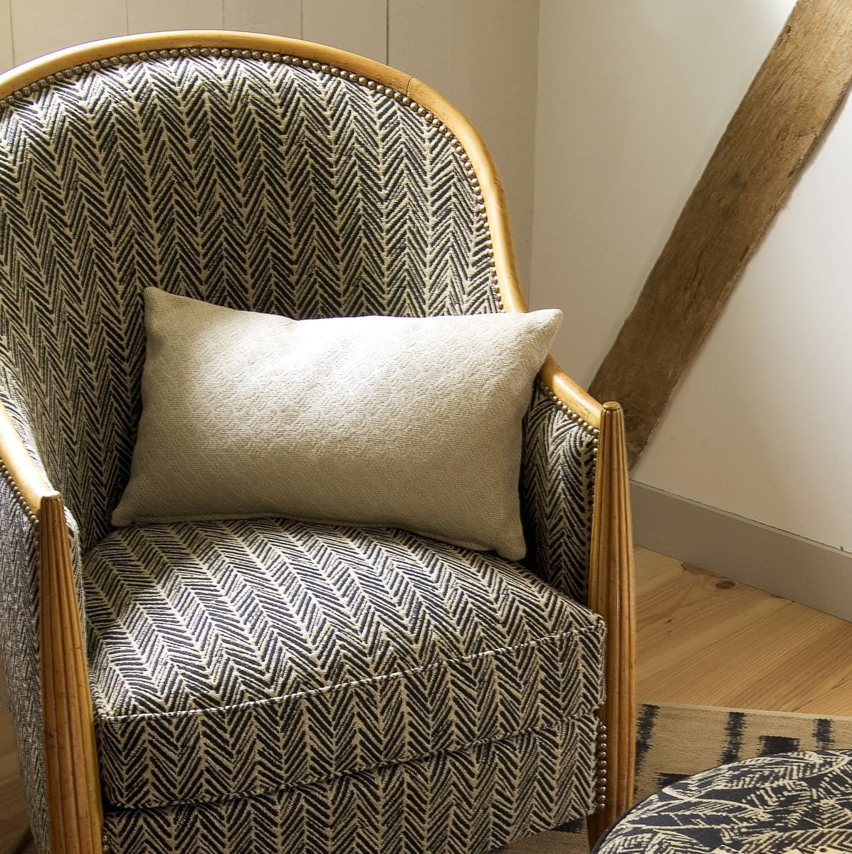 A linen and cotton stripe coordinated with the "Havane" fabric. which can be used on either side, depending on whether you want to highlight the colour of the natural linen or not. This fabric is mainly used for a upholstery but can also be used for curtains.