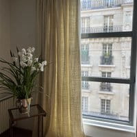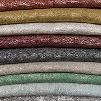 Tissage de lin coloré et métallisé décliné en 11 coloris. Ce tissage semi-transparent, une fois confectionné en stores ou rideaux, laisse passer une belle lumière tamisée chaleureuse.
