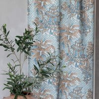 Mandalay de Marvic est un tissu d'ameublement haut de gamme en lin et coton, réinterprétation moderne d'un imprimé français d'archive. Son grand motif de pagodes sous des palmiers apporte caractère et exotisme à tout intérieur. Décliné en trois coloris, il se prête à la réalisation de rideaux, coussins ou assises élégantes.