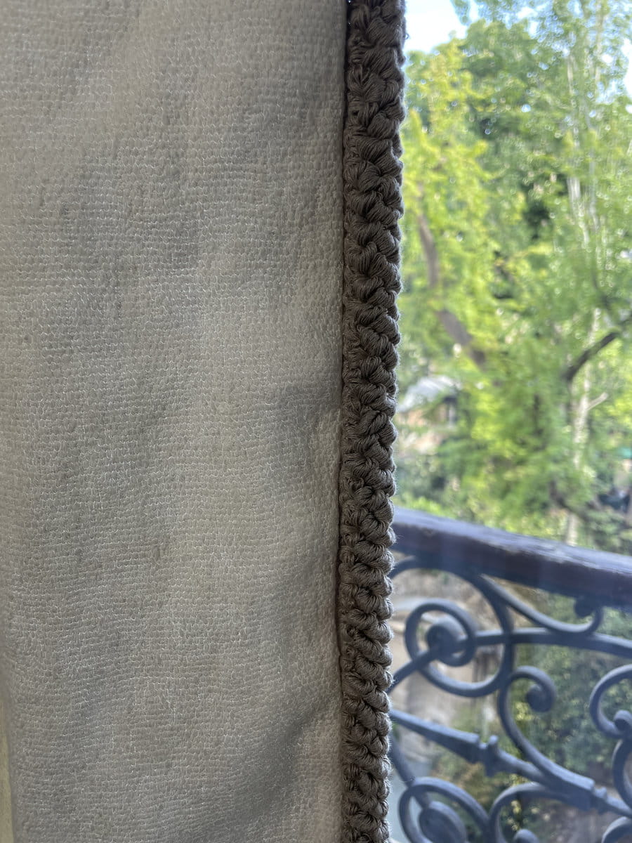 Brut de Craie offrira un tombé merveilleux pour la confection de rideaux, il sera également très élégant en siège mais nous recommandons fortement l'usage d'une bombe anti-tache qui protègera le tissu des salissures dues à sa matité.