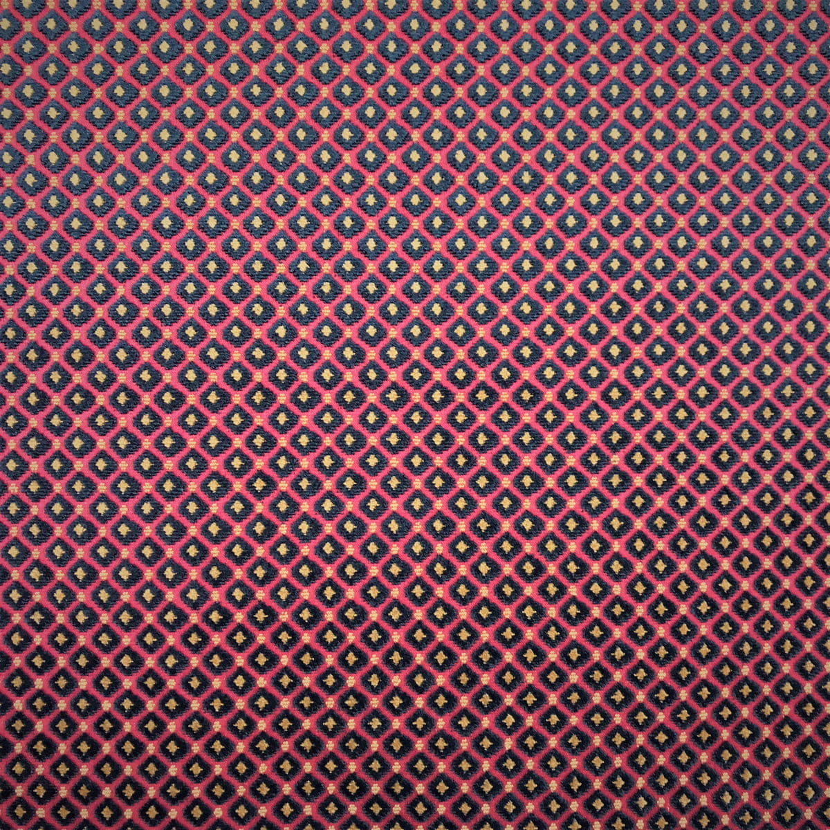 Velours de gênes à petit motif Louis XVI - Directoire, tissé selon la technique des velours bouclé-coupé. Ce type de velours est parfait pour la couverture de sièges ou la confection de coussins. Dans le temps l'écrasement du poil suite aux assises successives peut présenter des miroitements qui donneront au fil du temps une patine naturelle.