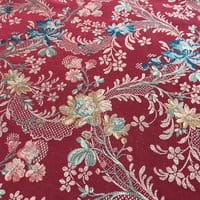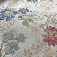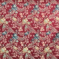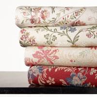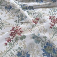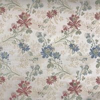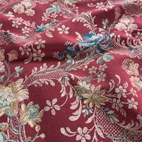 Soierie lin viscose d'esprit Louis XV. Cette étoffe composée d'un entrelac de guirlandes et de fleurs peut être destiné à la confection de sièges comme de rideaux.