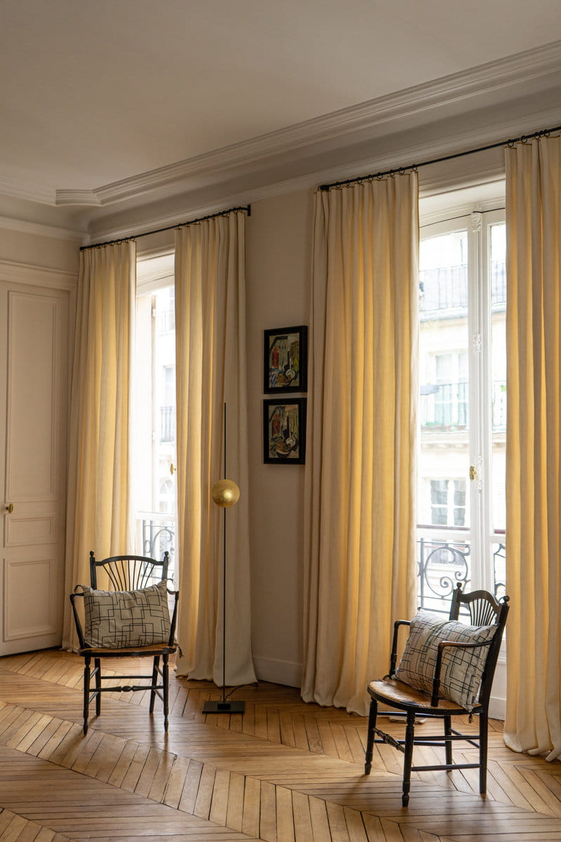 Gros lin de haute densité, d'esprit médiéval. Ce tissu présentera un tombé en rideaux ou en stores exceptionnel. Ce type de lin se gorge de l'hygrométrie ambiante ce qui lui confère une tenue toujours irréprochable.