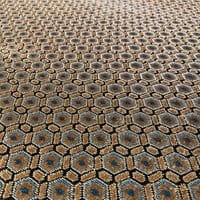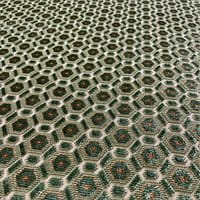Velours de gênes à petit motif Louis XVI - Directoire, tissé selon la technique des velours bouclé-coupé. Ce type de velours est parfait pour la couverture de sièges ou la confection de coussins. Dans le temps l'écrasement du poil suite aux assises successives peut présenter des miroitements qui donneront au fil du temps une patine naturelle.
