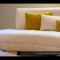 Tissu laineux d'aspect duveteux tissé avec un dessin de chevrons. Ce tissage tres résisant mais très souple peut-être destiné à la couverture de sièges, canapés ou coussins. Il a aussi un tombé magnifique en rideaux ou jetés de lits.